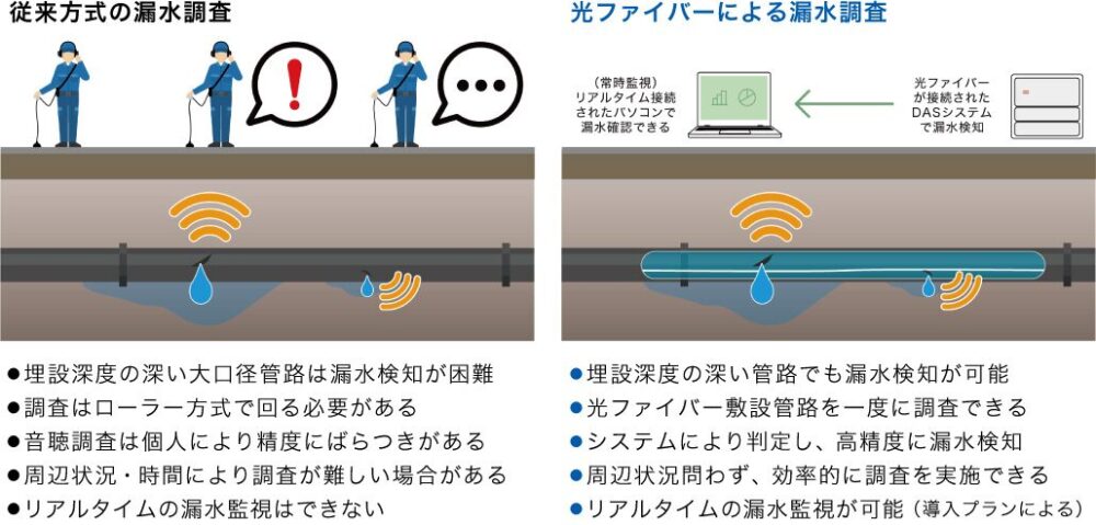■光ファイバーによる先進的調査⼿法を⽤いた⼤⼝径管路の漏⽔調査を実施