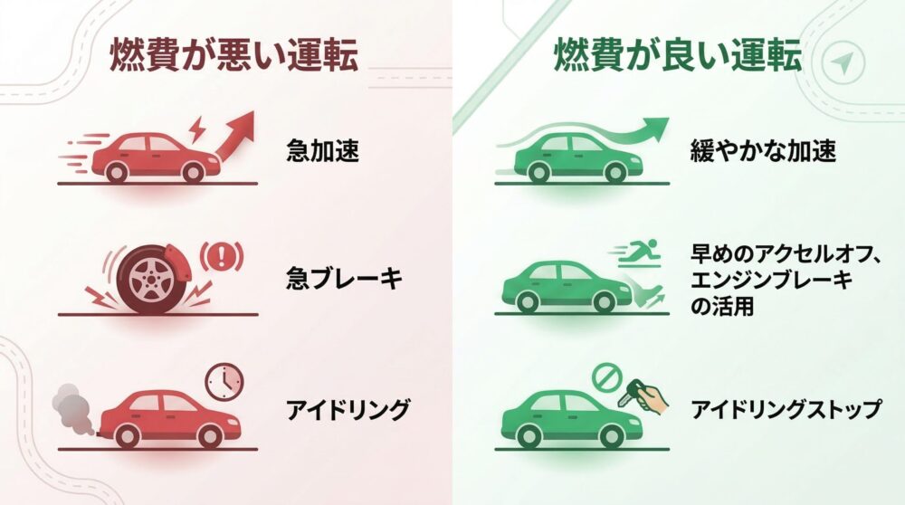 こうした運転が日常的に発生すると、燃料消費は想像以上に増えてしまいます。