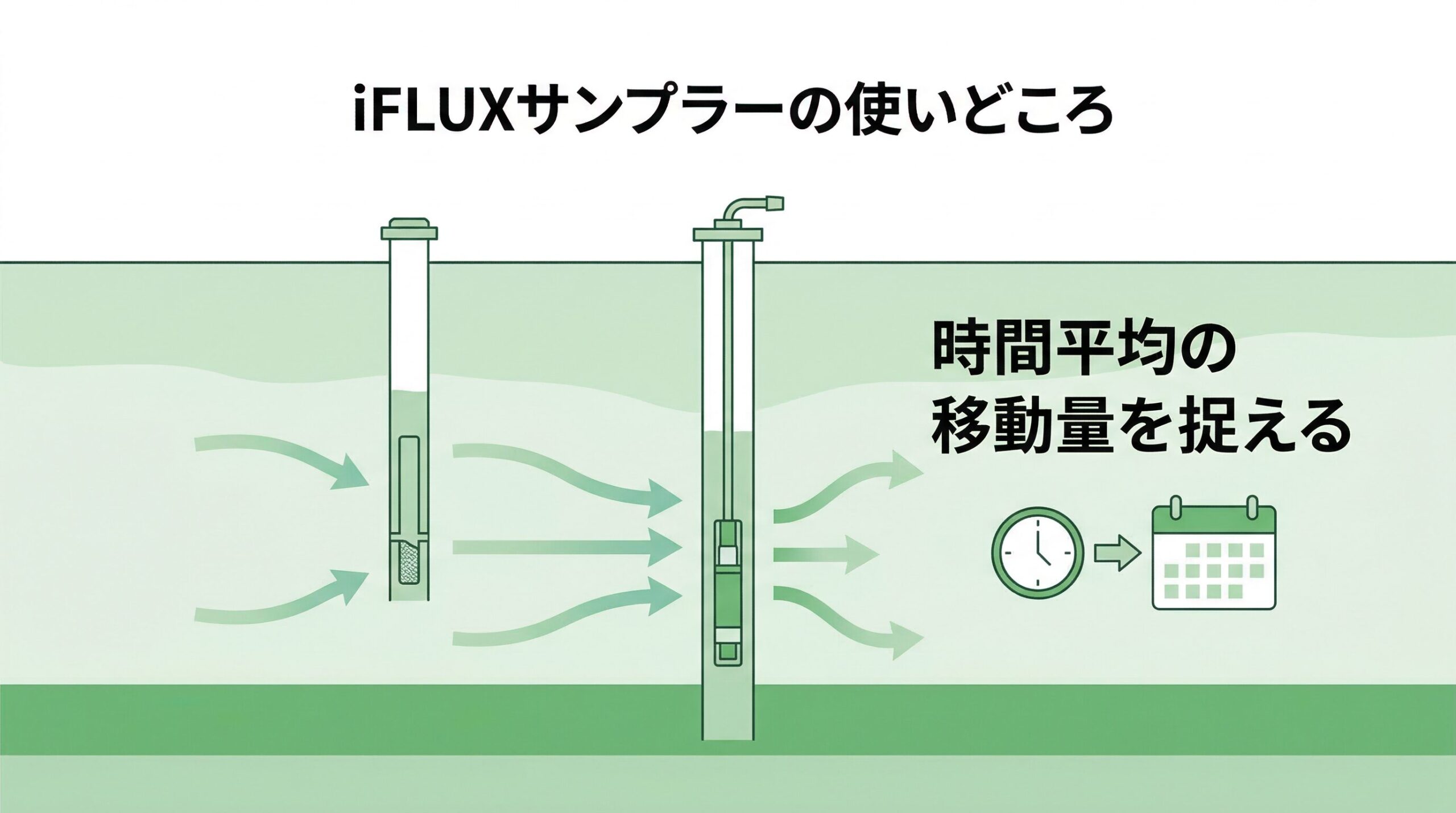 地下水フラックスと対象物質の質量フラックスを同時に評価できるため、従来の濃度中心の調査を補完する手法として活用されています。