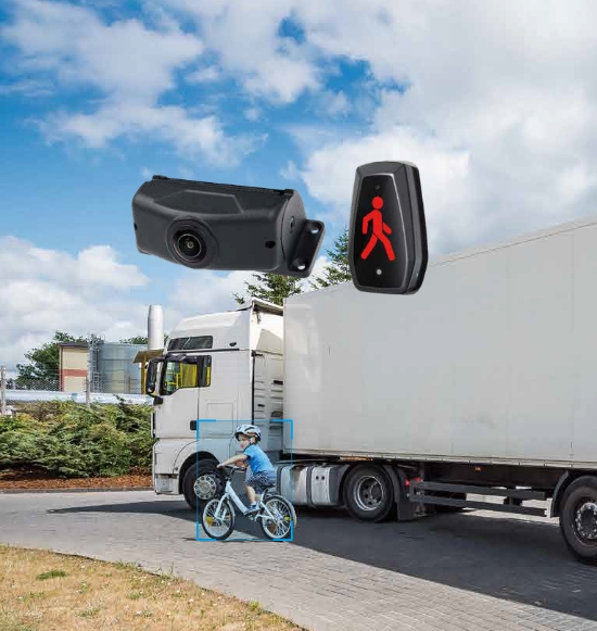 AI技術を搭載したカメラが大型車の死角を常に監視、